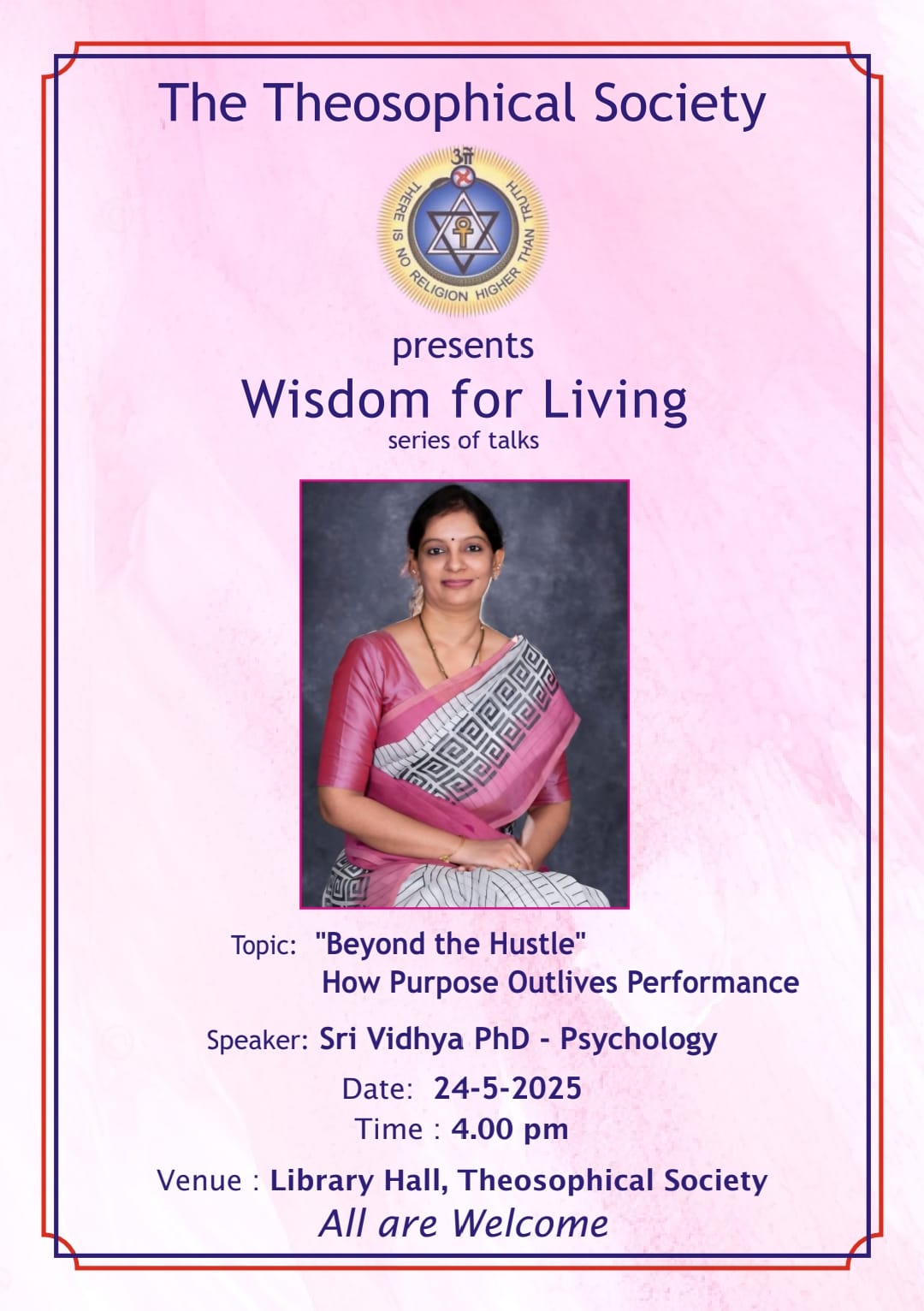 Venue: Library Hall, Theosophical Society